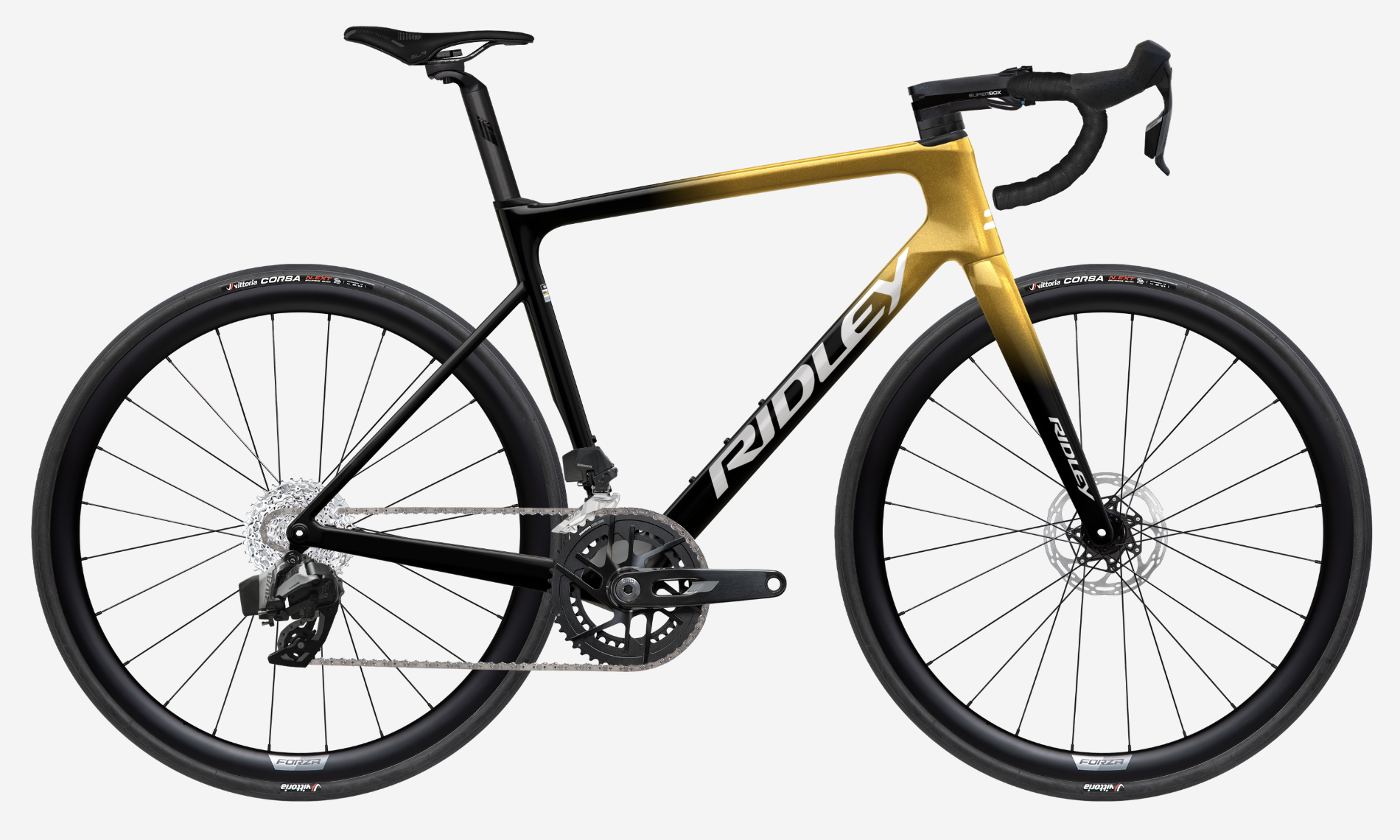 Tento model je osazen nejnovější dvanáctkovou sadou Sram Rival AXS a výplety 4ZA Skiron CR38. Na přání lze u tohoto modelu změnit výplety.
